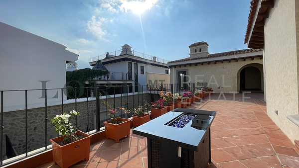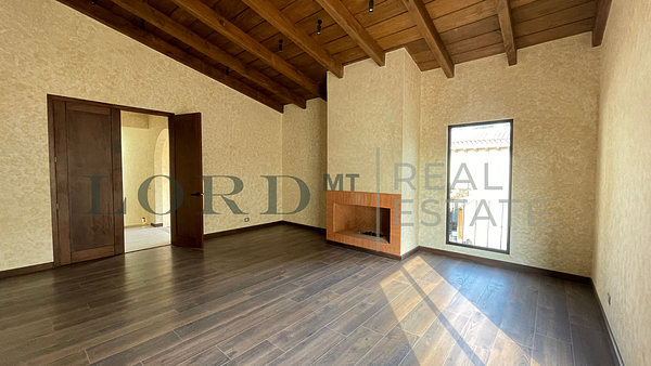 Dormitorio secundario con amplio baño, jardín privado y mezannine con baño Dormitorio Master en segundo nivel con terraza, chimenea, amplio baño, tina, w.c.
